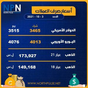 إنفوغرافيكاخر الاخبارملتيميديا صرف الليرة السورية مقابل العملات الأجنبية والذهب 3.10.2021 في أكتوبر 3, 2021 شارك FacebookTwitterWhatsAppFacebook MessengerTelegramطباعة