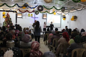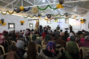 وأقيمت الاحتفالية في كنيسة اتحاد المسيحي الإنجيلي الراعي صالح عفرين في قرية تل سوسن بمقاطعة الشهباء بحضور العشرات من المهجرين.