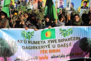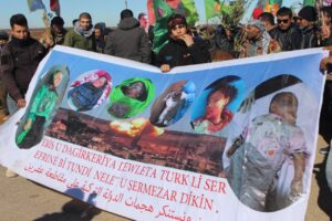 ردّد المشاركون في التظاهرة شعارات تندّد بالاحتلال التركيّ وهجماته على عفرين، وطالبت بتحريرها ليتسنى لأهاليها العودة إلى منازلهم وقراهم التي هجروا منها بفعل الاحتلال.