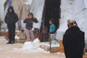 والتقط مراسلنا صوراً ومقاطع فيديو تظهر فيها ما حمله الثلج من بهجة على وجه الأطفال الذين سارعوا للهو، بعيداً عن أجواء الحرب والنزوح التي يعيشونها، رغم الظروف المعيشية التي يمر بها مهجرو عفرين في مخيمات الشهباء من انقطاع للمحروقات والمواد الغذائية والطبية، نتيجة الحصار التي تفرضها قوات وحواجز قوات الحكومة السورية عليهم.