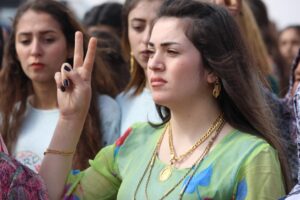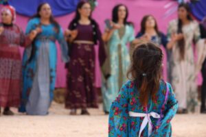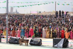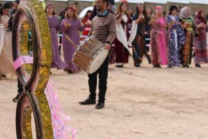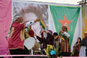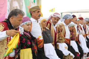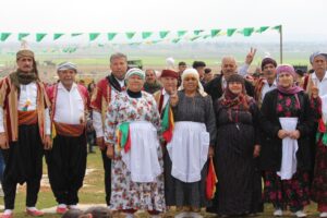 وتوافد منذ الساعات الباكرة لصباح اليوم، 8 مارس/ آذار، إلى مكان الاحتفاليّة الآلاف من نساء عفرين والشَّهباء، ومن جميع المكوّنات، وهُنَّ مرتديات الزّيَ الفلكلوريّ الشَّعبيّ لكُلّ مكوّن، لمكان احتفالية يوم المرأة العالمي.