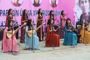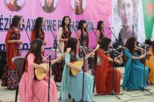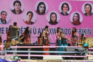 أشادت الكلمات بالمقاومة البطولية التي أبدتها المرأة في شمال شرق سوريا، وحققت من خلالها العديد من الإنجازات والانتصارات خلال عشر سنوات من عمر الثورة.
