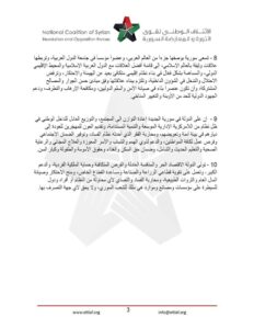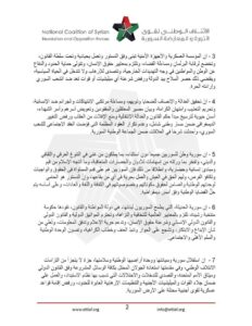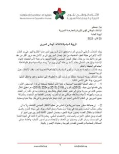 ومن جانبها أصدر يوم أمس ما يسمى “الائتلاف الوطني لقوى الثورة والمعارضة السورية” الرؤية السياسة الخاصة بها حول حل الأزمة السورية وإنهاء الصراع السوري.