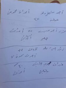 وأسماء المصابين هي كالتالي: “1 – محمد حسين مصطفى/ ٦4 عاماً من قرية “كورزيليه جيه”، 2 – مصطفى درويش جندو/ ٥٢ عاماً من قرية “قسطل جندو”، 3 – خاتون حسن حسن/ ٤0 عاماً من قرية “حسن ديرا”، 4 – أحمد شيخو ولو/ ٤٢ عاماً من قرية “عبلا”، 5 – عزيزة أحمد عيسى/ ٥٢ عاماً من قرية “الجبلية”، 6 – زينب حيدر علو/ ٣٣ عاماً من قرية “كوباكيه”، 7 – فيدان صبري جاويش / ٤0 عاماً من قرية “بافلون”، 8 – حمدو فارس حمدو/ 50 عاماً من قرية “قطمه”، “.