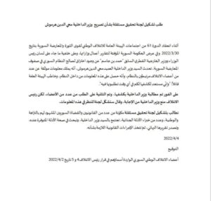 وطالب أعضاء الائتلاف من وزير الداخلية بكشف الأسماء، إلا أن رئيس الائتلاف “سالم المسلط” منع الوزير من الإجابة، وقال سنشكل لجنة للنظر في هذه المعلومات.