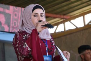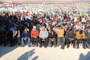 بعد الوقوف دقيقة صمت على أرواح الشهداء، ألقت عضوة هيئة الشؤون الاجتماعية والمشرف على المشروع “عكيد خليل”، أشاد في حديثه بمقاومة الشعب بوجه جميع العوائق والصعوبات التي يواجهونها في المهجر بين كل لحظةٍ وأخرى، وأكد أن عملهم يجسد المقاومة وإصرار شعبٍ يرفض الانحلال والاستبداد.