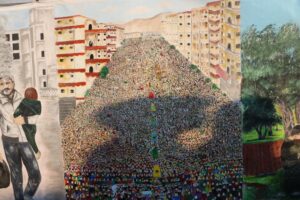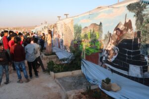 عرض لوحة “حكاية مدينة الزيتون” في مناطق الشهباء بريف حلب الشمالي