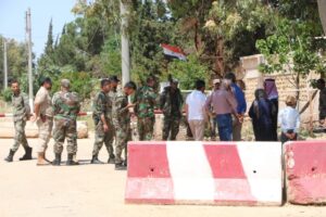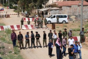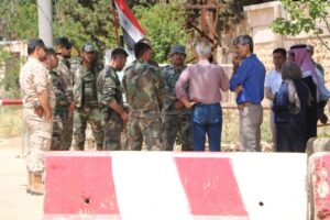 وعند الوصول إلى أمام النقطة الروسية في القرية، أدلى الأهالي بيان قرئ من قبل عضوة إدارية في مجلس مخيم المقاومة نهال عيسى