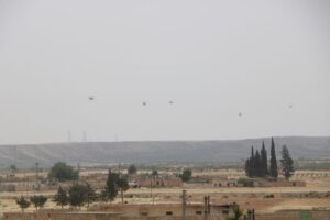 حلقت قبل قليل في سماء مقاطعة الشهباء بشمال شرق سوريا 6 طائرات هليكوبتر تابعة للقوات الروسية.