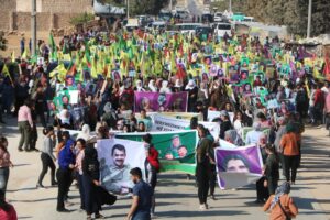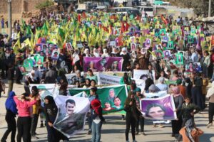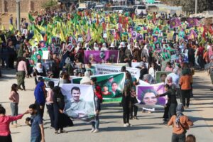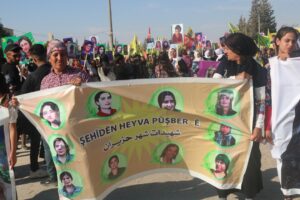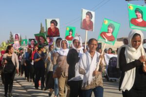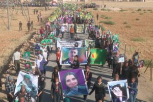 وأكدت “كولي محمد” أنهم من خلال هذه التظاهرة يردّون على مساعي الدولة التركية في شن عدوان على مناطق شمال وشرق سوريا، ويؤكدن أنهن صاحبة عزيمة وإصرار ولن يضعفن أو يستسلمن أمام مجازر وجرائم الدولة التركية بحق المرأة.