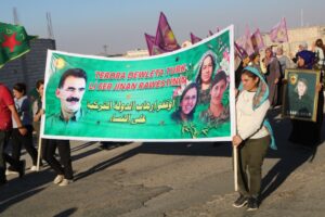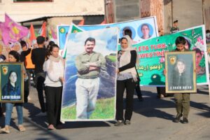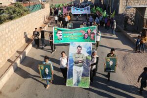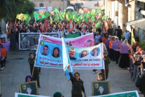وانطلقت التظاهرة من دوار ناحية أحرص وصولا لمزار “شهداء مقاومة العصر ” في الناحية، بعد الوقوف دقيقة صمت ألقت عضوة منسقية مؤتمر ستار عفرين فريدة إيبو كلمة.
