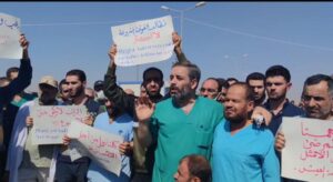 وامتدد الاحتجاج إلى مشافي مدينة الباب التي تعاني وتواجه ذات المعاناة والمشاكل.