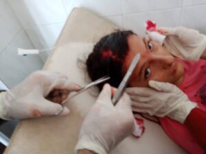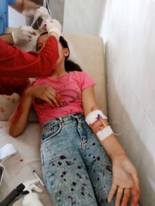 هذا وتم نقل الطفلة إلى مشفى افرين بناحية فافين لخطورة حالتها.