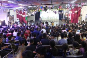 وأقيم المهرجان في صالة مركز الثقافة والفن بناحية أحداث في مقاطعة الشهباء بشمال شرق سوريا، حيث زينت بصور وشعارات الطفولة والألوان المزهرة، وصور الأطفال الذين فقدوا حياتهم بقصف القوات التركية على عفرين والشهباء.