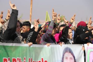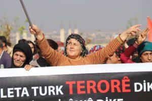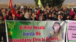 وانطلقت التظاهرة من طريق مدرسة المشاة في ناحية فافين بمقاطعة الشهباء مرددين الشعارات التي تندد بالقصف التركي على الأراضي السورية وترفض الخيانة وتنادي بوحدة الأراضي السورية وتكاتف شعوب شمال وشرق سوريا.