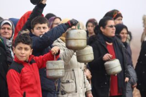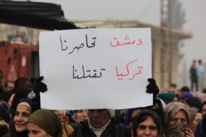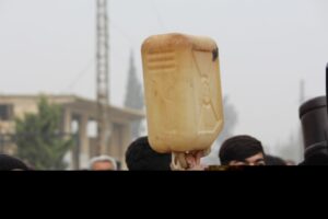 ورفع المشاركون في التظاهرة بيدونات مازوت فارغة، ولافتات كتبت عليها “حصاركم لن يضعف مقاومتنا”، “نطالب بفك الحصار الجائر على مهجرين وعودة أهالي عفرين لديارهم وطرد الاحتلال التركي”، “نطالب بعدم التساوم مع حكومة تركيا على الشعب السوري”.