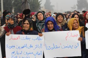 وطالب المتظاهرون في بيانهم حكومة دمشق بإعادة النظر في سياستها وما ترتكبه من جرائم وانتهاكات بحق الشعب السوري في الشهباء.