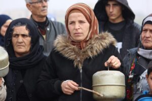 وأمام حاجز حكومة دمشق أدلى أهالي الشهباء ومهجري عفرين كلمة أشاروا فيها إلى أنهم في أزمة محروقات وأبسط مقومات الحياة ومحاصرين من كافة الجهات، وأكدوا إلى أنهم دافعوا عن أراضي شمال وشرق سوريا وكافة الأراضي السورية لحمايتها من تركيا واعتداءاته.