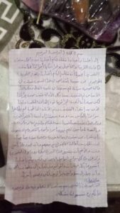 وهذا نص رسالة احد المعتقلين السوريين المحتجزين في مدينة وهران الجزائرية.