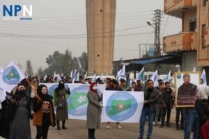 وانطلقت التظاهرة من أمام “حديقة القائد” في حي الناصرة , حاملين أعلام حزب سوريا المستقبل، و صورة الامينة العامة للحزب هفرين خلف التي اغتيلت من قبل الفصائل الموالية لتركيا .