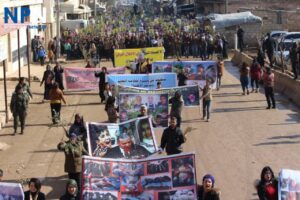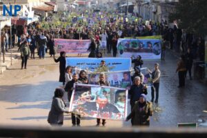 تحت شعار “عفرين لنا وستبقى لنا”، خرج المئات من مهجري عفرين وأهالي الشهباء في شمال شرق سوريا تظاهرة في الذكرى السنوية الخامسة لشن الهجوم التركي على عفرين.