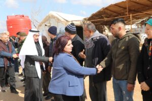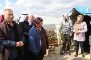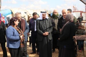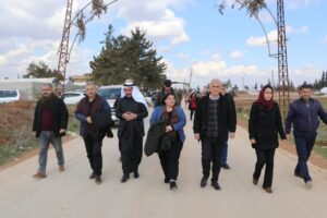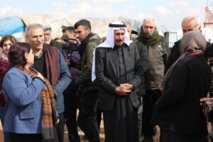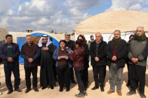 وضم الوفد ممثلين عن هيئات ومؤسسات الإدارة الذاتية لشمال شرق سوريا، ذوو ضحايا الزلزال فس خيمة العزاء الجماعية التي نصبت في ناحية أحداث بالشهباء والهاربين والمتضررين من الزلزال في مخيمي سردم وبرخدان.