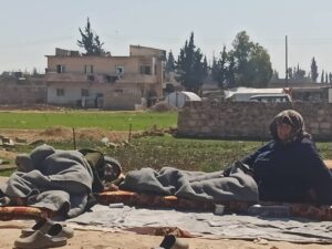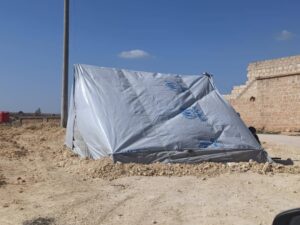 ونتيجة لاستمرار الهزات الارتدادية بين الحين والأخر نصب مهجرو عفرين وأهالي الشهباء في المنطقة خيمة بجانب منازلهم خوفاً من انهيار منازلهم الشبه مدمرة من الحرب بإحدى الهزات الارتدادية.