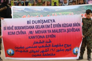 وانهى حديثها بالتطرق إلى أنه لا قرار ثالث لأهالي عفرين “إما العودة بكرامة وحرية إلى أرضهم أو الموت على أرض المقاومة بكرامة وعم الرضوخ للاحتلال التركي.”