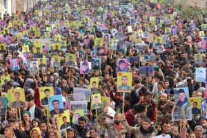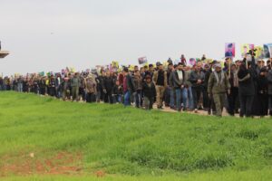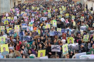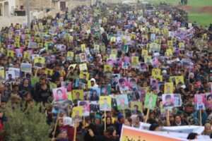 تظاهرة عشرات الآلاف من مهجري عفرين في الشهباء وقرى ناحية شرا وشيراوا وأهالي مقاطعة الشهباء بمكوناتها ضد جرائم وانتهاكات الدولة التركية في عفرين مع مرور خمسة أعوام من السيطرة التركية.