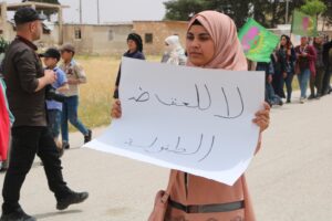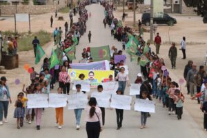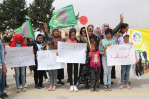 خرجت نساء مقاطعتي عفرين والشهباء في الشمال السوري بتظاهرة حاشدة تنديداً بجرائم اغتصاب الأطفال ونساء في عفرين من قبل تركيا والفصائل الموالية لها.
